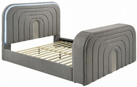 The Shelyn Eastern king bed combines contemporary luxury and high-tech features, including integrated LED lighting, a TV stand, fireplace, and bluetooth connectivity. Upholstered in sleek gray fabric, it offers ultimate comfort, style, and functionality for today’s modern bedroom retreat.Read More
