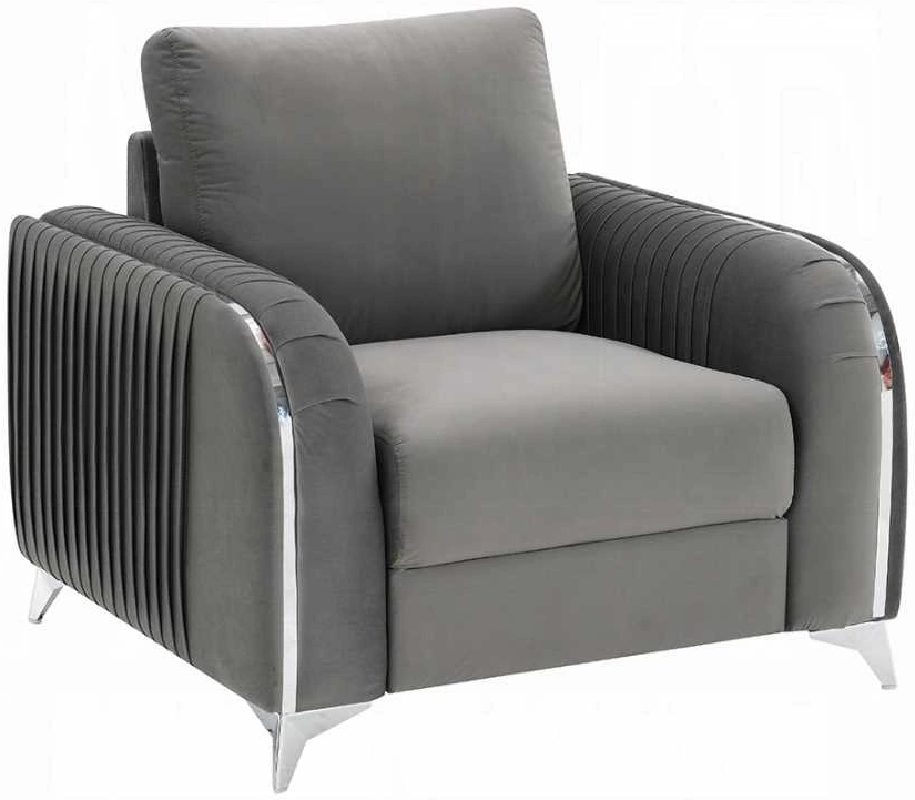 The armrests boast eye-catching vertical pleating that creates a beautiful contemporary 3D effect. This chair offers plush pocket coil seating for hours of comfort around the TV with the family.