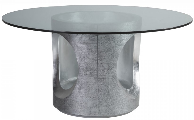 Modern, organic casted design in a textured gray finished exterior with contrasting silver leaf finish in the decorative open area and on the plinth base. One base is required for the round glass top.Read More
