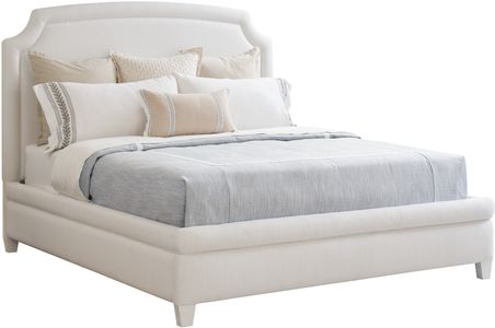 The fully upholstered Avalon bed features an elegant arched headboard with soft concave corners, and the side rails and footboard are fully upholstered as well. The design is available exclusively in pattern 2277-11, which is a stain-resistant performance fabric in fresh pearl white coloration.Read More