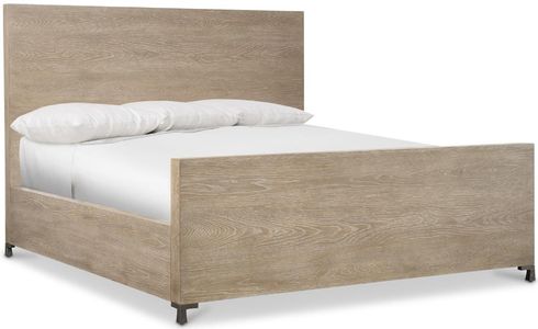 Simple lines craft a quietly sophisticated look on the Aventura panel bed. Inspired by relaxed California style, the wood grain shines through the Marcona finish. Cast metal feet in a Frosted Nickel finish support the headboard and footboard for a chic rustic detail.Read More