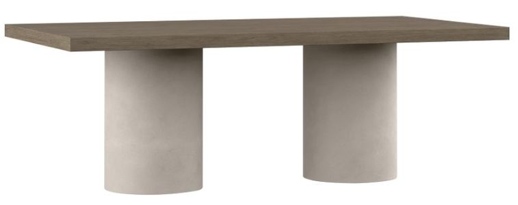 Warm, effortless and tranquil, the Casa Paros dining table finds its inspiration in organic themes. Two round pedestal bases in cast resin have the look of stone in bedrock faux concrete finish. They support the wood top in playa finish for the perfect balance of contrasting materials.Read More