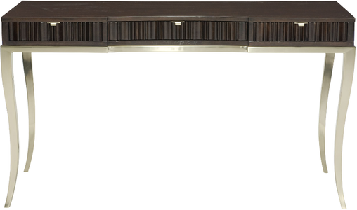 Flat cut cherry veneers. Fluted overlays on apron and drawers. Three drawers. Plated tubular steel base in Argento finish. Adjustable glides.Read More