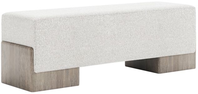 Two wood base panels cradle a deep upholstered seat, giving the Monolith bench a bold design. The textured base panels extend up the sides of the seat in wirebrushed white oak in Puma finish.Read More