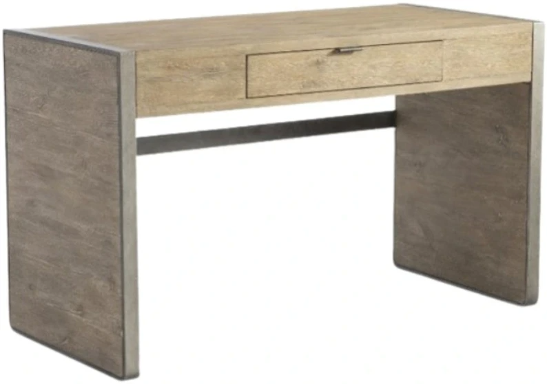 The Tribeca desk melds modern inspiration with rustic styling for a stunning design. Textured steel frames wood panels on either side of the distressed wood desk top. Visible natural features of the wood add authenticity in the aurum finish.Read More