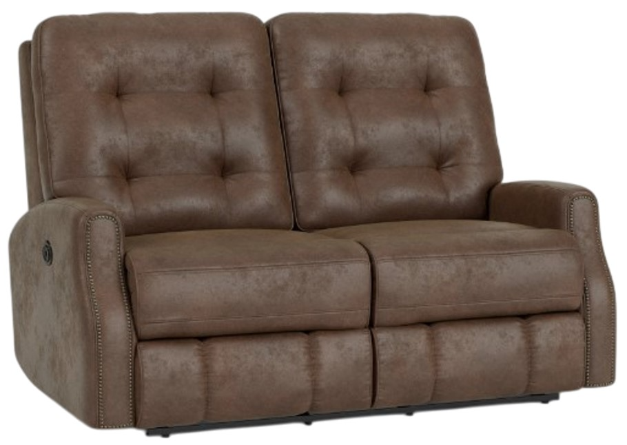 Bask in the soft upholstery of the Devon fabric power-reclining loveseat with nailhead trim. With the power-reclining mechanism, stretch out in your favorite reclined position at the push of a button.