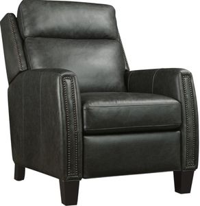 Wrapped in Jala gray leather, the Jacklyn recliner delivers graceful structure and deep comfort. Nailhead trim in gunmetal adds a touch of drama to the arms and back, while the power recline and discreet headrest provide ergonomic support. A striking piece for polished, transitional settings.Read More
