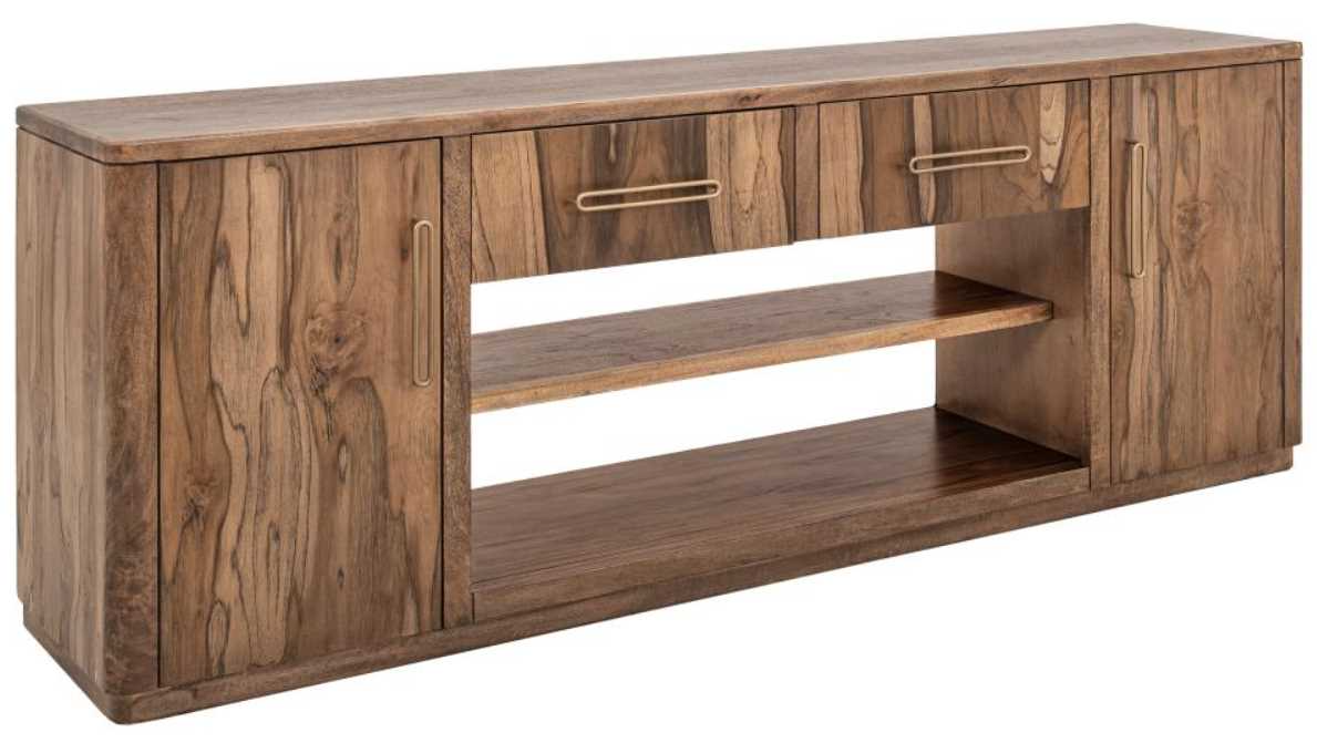 Our Balam collection is handcrafted from mango and teak wood. This simple yet stunning collection will bring an organic, modern touch to your space. This 80-inch TV stand becomes the heart of your living space, featuring two drawers and two doors for ample storage and a design that highlights the wood’s unique grain.Read More