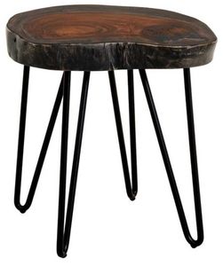Unique live-edge tables. Shape and diameter will vary. Natural imperfections such as color variations, blemishes, cracks, and holes are present.