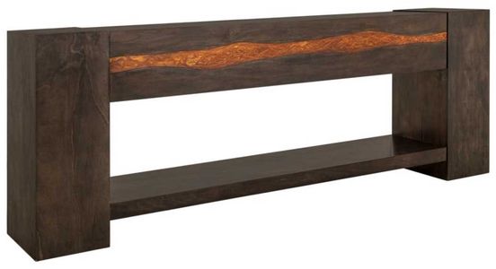 Its bold, modern shape is enhanced by a hand-poured epoxy resin inlay and copper mineral accents that gently catch the light, adding both durability and visual interest. Designed to draw attention from every angle, the Raramuri Console is a future heirloom that brings timeless style and the essence of nature into your home.