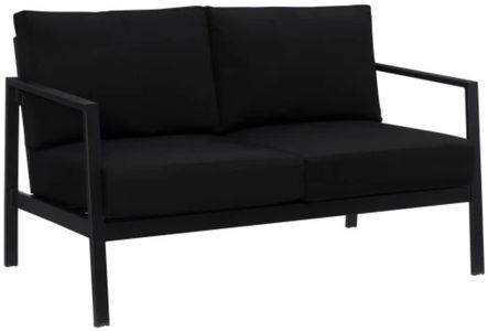 The deep foam cushions, wrapped with premium Sunbrella™ fabric in black, resist fading, stains, and mold, ensuring comfort and stress-free maintenance throughout the seasons. Compact yet inviting, this loveseat is ideal for patios, balconies, and garden nooks, providing cozy seating for two. Pair it with other pieces from the collection to create a coordinated and contemporary outdoor retreat.