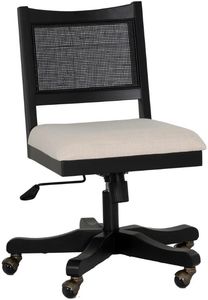 Add elegance and comfort to your workspace with this stunning rolling office chair. Choose between sleek black lacquer or a warm natural stain, both paired with a neutral cream upholstered seat that complements any decor. The timeless cane back detailing adds texture and sophistication, making it a standout piece for your home or office.Read More