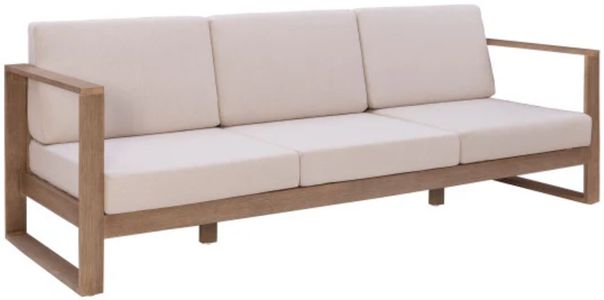 A natural wire brushed finish provides a raw representation of the knots and patterns in the woodgrain. Beige olefin upholstery over high density foam cushions solidifies the neutral colorway while also providing water and uv resistance for years to come. Additional pieces are available to create a matching set and completely revamp your outdoor space.