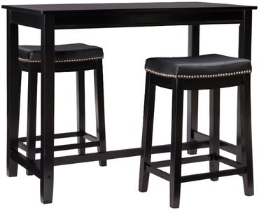 Make a bold statement with this elegant 3-piece counter set, both timeless and highly functional in tight quarters. The streamlined pub table in jet-black provides a sleek and sturdy foundation, while the two matching counter stools double down on the sleek colorway with their leather upholstery, also in black.Read More