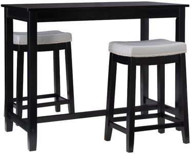 Make a bold statement with this elegant 3-piece counter set, both timeless and highly functional in tight quarters. The streamlined pub table in jet-black provides a sleek and sturdy foundation, while the two matching counter stools offer a subdued pop of color with their gray faux leather upholstery.Read More