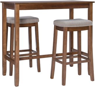 Complete 3-Piece Set: Includes a bar-height pub table and 2 matching stools to provide a coordinated, space-saving dining solution. Ideal for compact kitchens, breakfast nooks, or apartment living