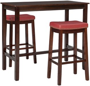 Complete 3-Piece Set: Includes a bar-height pub table and 2 matching stools to provide a coordinated, space-saving dining solution. Ideal for compact kitchens, breakfast nooks, or apartment living