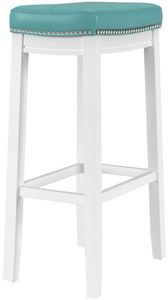 Timelessly elegant, this barstool steals the show with its tailored details and coastal colorway. The contoured saddle seat, upholstered in a beautiful teal faux leather, provides plush comfort with a refined aestheticRead More