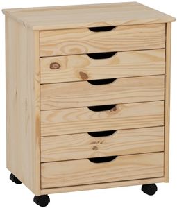 Six spacious drawers measuring 17.2” W x 12.4” D x 2.05” H provide ample room for office supplies, craft materials, clothing, or household essentials. The cutout handles and smooth-glide drawers ensure easy access, while maintaining a sleek, minimalist appearance. Caster wheels ensure easy and smooth mobility.