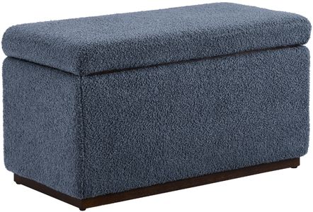 Out of sight storage, style, and comfort come together as one to form this versatile ottoman. Soft sherpa fabric in blue covers the padded exterior, offering a fuzzy seat for two or a footstool to kick up your feet without overcrowding.Read More