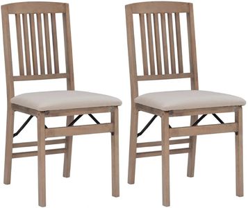 The sturdy frame is constructed with solid rubberwood, accommodating weights of up to 300 lbs. Comfortable foam cushioning is dressed in an easy-to-clean beige fabric. When not in use, the chairs fold flat, ready to be conveniently tucked away.