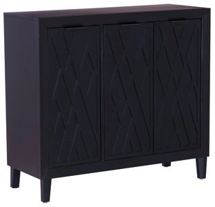 Elevate your home decor with this statement-making accent cabinet, where bold design meets everyday functionality. The three doors feature a repeating diamond pattern cutout, creating a dynamic sense of movement that adds visual intrigue to any space. Crafted with a sturdy, solid wood frame for lasting durability, this cabinet is as practical as it is stylish.Read More
