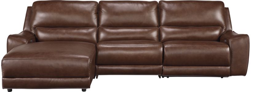 Includes 3 Pieces: Left-arm facing power reclining back chaise, armless chair and right-arm facing power recliner