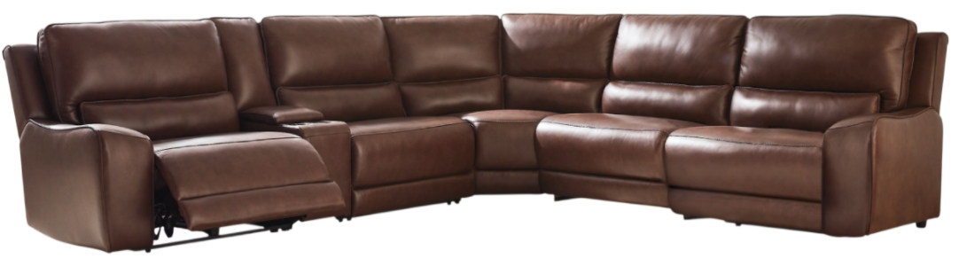 Includes 6 Pieces: Left-arm facing power recliner, power armless recliner, armless chair, wedge, console with storage and right-arm facing power recliner