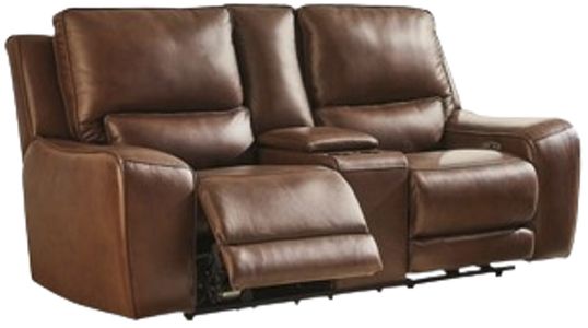 Live and lounge luxuriously. This power reclining loveseat brings an ultra-stylish flair to your home’s central hub. Its seating area is wrapped in top grain leather in a sleek neutral color, giving you a trend-right look made all the better with high-quality materials.Read More