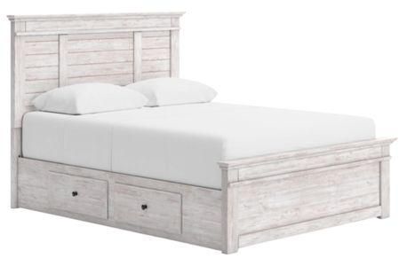 Looking to create a bedroom that feels airy and beautifully put together? This casually comfy queen panel storage bed is your perfect solution. Its clean lines, whitewash finish and replicated pine grain exude a charming cottage-inspired feel that brightens your restful retreat.Read More