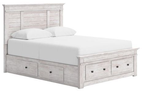 Looking to create a bedroom that feels airy and beautifully put together? This casually comfy queen panel storage bed is your perfect solution. Its clean lines, whitewash finish and replicated pine grain exude a charming cottage-inspired feel that brightens your restful retreat.Read More