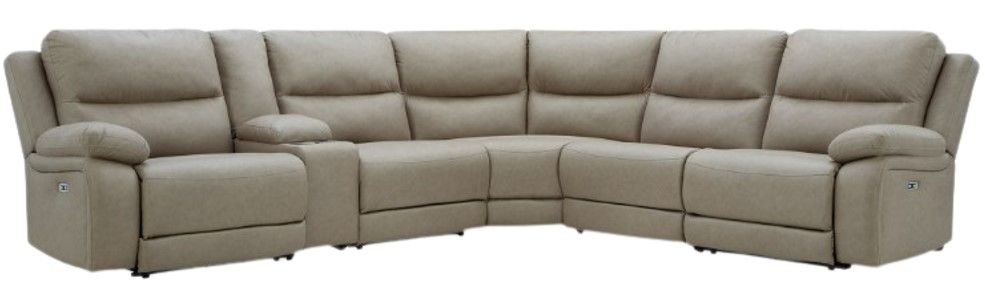 Experience ultimate comfort with this power reclining sectional. Generously cushioned with plush bustle back styling and pillow top track arms, it's wrapped in a richly neutral upholstery that’s oh-so soft. Jumbo stitching gives the sectional added definition.Read More