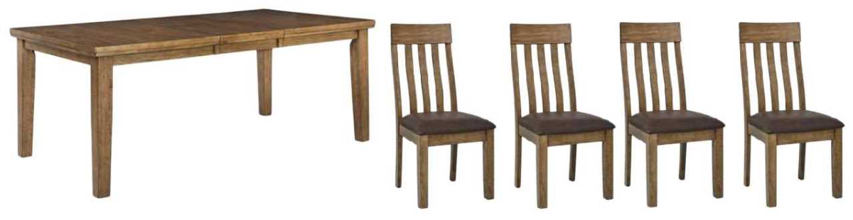 Set includes dining table and 4 dining chairs.