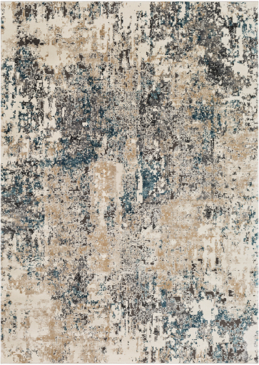 Surya Pune Tan, Charcoal, Light Beige, Dark Brown, Black, Deep Teal, Sky Blue colored, 5'3" x 7'3" Rug features 80% Polypropylene, 20% Polyester, machine woven and medium pile.Read More