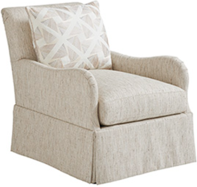 The Palm Frond Chair, with waterfall skirt and loose back cushion, is available as a stationary chair or as a swivel 7763-11SW. Note the opportunity for a contrast fabric on the back cushion.Read More
