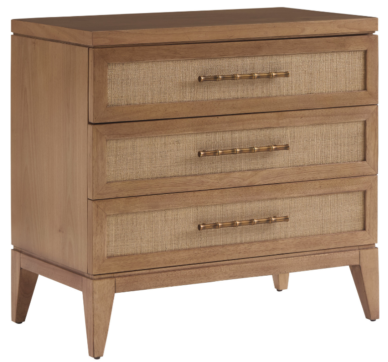 The Beachside nightstand offers three soft-close drawers with raffia front panels and tapered legs. Featuring a rich brown finish, it provides convenient storage with spacious drawers. This stylish piece offers both functionality and elegance, perfect for any bedroom setting.Read More