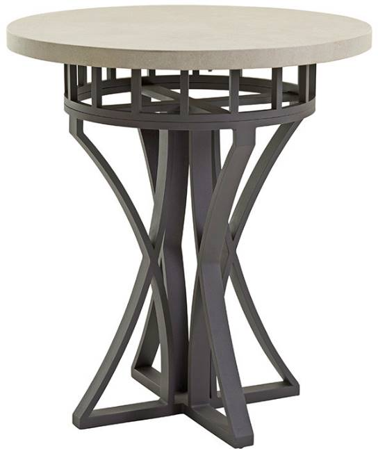 The weatherstone top has the look of honed limestone, with exceptional durability above an attractive aluminum frame in an aged iron finish. The six inch riser just below the table top may be removed for the lower dining option.Read More