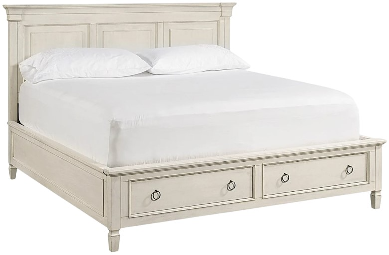 Showcasing stunning panel detailing and a soft white finish, the Summer Hill storage king bed offers premium style and convenience with two pull-out storage drawers. Its spacious design maximizes organization while maintaining a clean, elegant look, making it a perfect choice for creating a serene, functional, and beautifully arranged bedroom retreat.Read More