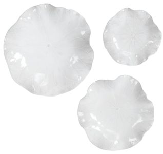 Each piece features dimensional floral-inspired forms finished in a crisp white tone, creating a soft yet striking visual effect. The trio can be displayed together for a cohesive statement or arranged separately to accent different walls, offering flexibility in styling.Read More
