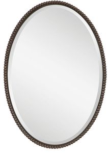 This oval mirror features a beaded frame made of hand forged metal finished in lightly distressed, oil rubbed bronze. Mirror is beveled. Durable yet chic, it complements a wide range of décor styles, offering timeless appeal and practical beauty.Read More