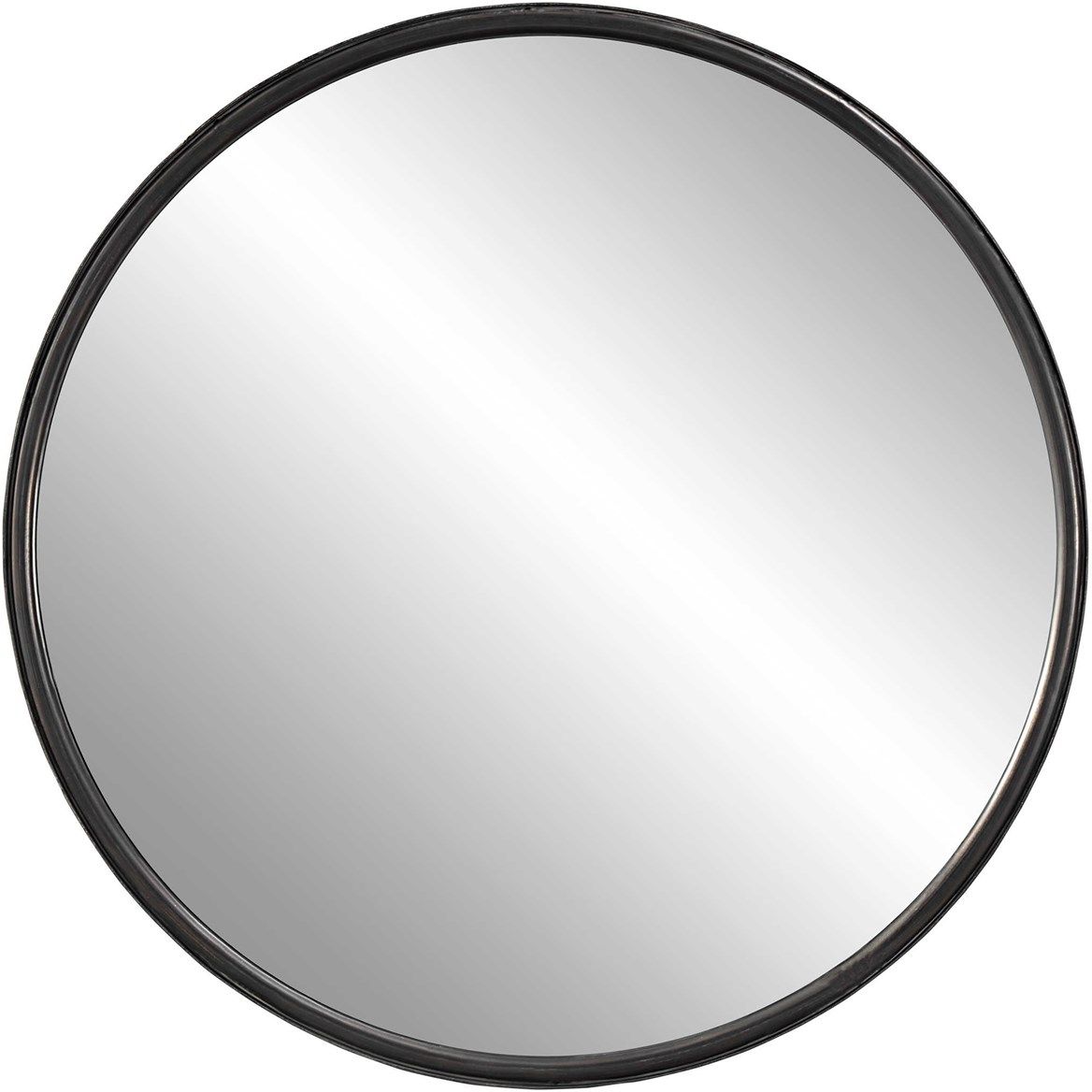 Smooth rounded frame encased in a thick iron band finished in an aged black with subtle gray highlights.Read More