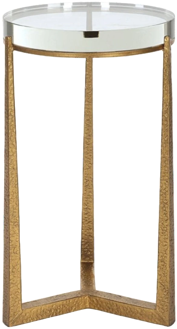 This elegant accent table adds a touch of luxury to any room. The textured antique gold finished iron legs perfectly support and accentuate the thick round crystal top. Making it a perfect addition to any space.Read More
