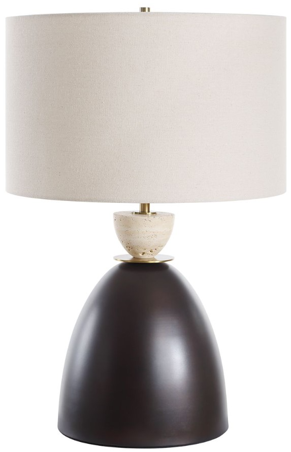 Featuring a distinctive dark bronze iron base paired with a contrasting Travertine stone ornament, the Procida Table Lamp effortlessly blends sophistication and contemporary style, making it a striking addition to any space. The round hardback shade is covered in a light beige linen fabric with natural slubbing.Read More