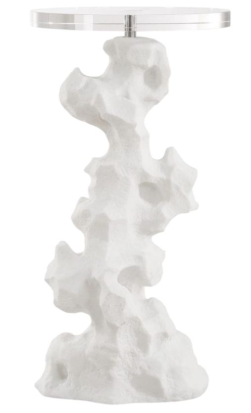 Crafted from man-made white stone that accurately replicate the look of Thassos marble, the Remnant accent table doubles as a table and a modern work of art. The top is made of thick crystal.Read More