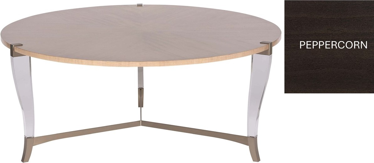 A sleek and sophisticated round cocktail table from the Vanguard Perspective Collection, the Clarion cocktail table blends modern materials with classic craftsmanship. Featuring a Mocha wood finish, soft bronze metal, and acrylic accents, it’s designed to complement a variety of interior styles with elegance and versatility.Read More